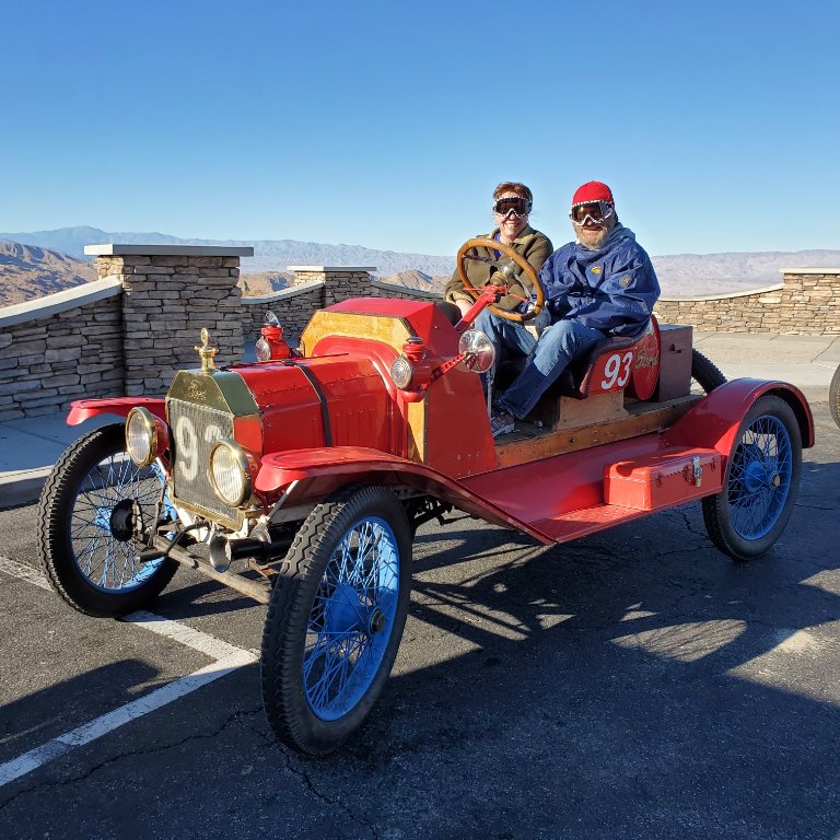 A made to order breakfast, again poolside, greeted us on our first day of touring. It couldn’t have been a nicer day. Clear blue skies, 75 degrees, and a nurturing breeze. Our first 150 mile Joshua Tree National Monument day looped south through the Coachella Valley National Wildlife Refuge to Mecca California against the Salton Sea, then north through dramatic Box Canyon and into the Park’s south entrance. By noon we were at Jumbo Rocks picnic grounds nestled in and surrounded by massive five story tall boulders that looked as if they were collected in that one place by God himself. As we waited there for the trouble truck with our lunches this was the perfect spot to break out the Bloody Mary fixing and get better acquainted with those outside our Chapters. Three hours passed. The drinks, and their effect, had long been depleted. Still no trouble truck. So, with empty stomachs, we fired up and headed through the Park’s north gate and back to a second evening of sunset cocktails, hosted by the resort’s quirky owner, and the usual tall tails fueled by complimentary wine and Larry "Original" Smith’s bottle of Bulleit Whiskey. Mark, our rookie trouble truck driver who has until now never driven a Model T or pulled a trailer, showed up in time for us to eat that day’s sandwiches etc for dinner. He had returned to the resort directly with a broken “modernized” T behind him instead of continuing on route through the Park. The cars that retained what Henry Ford originally put in them made it without issue.