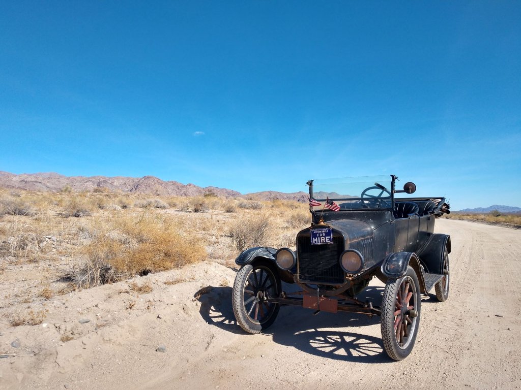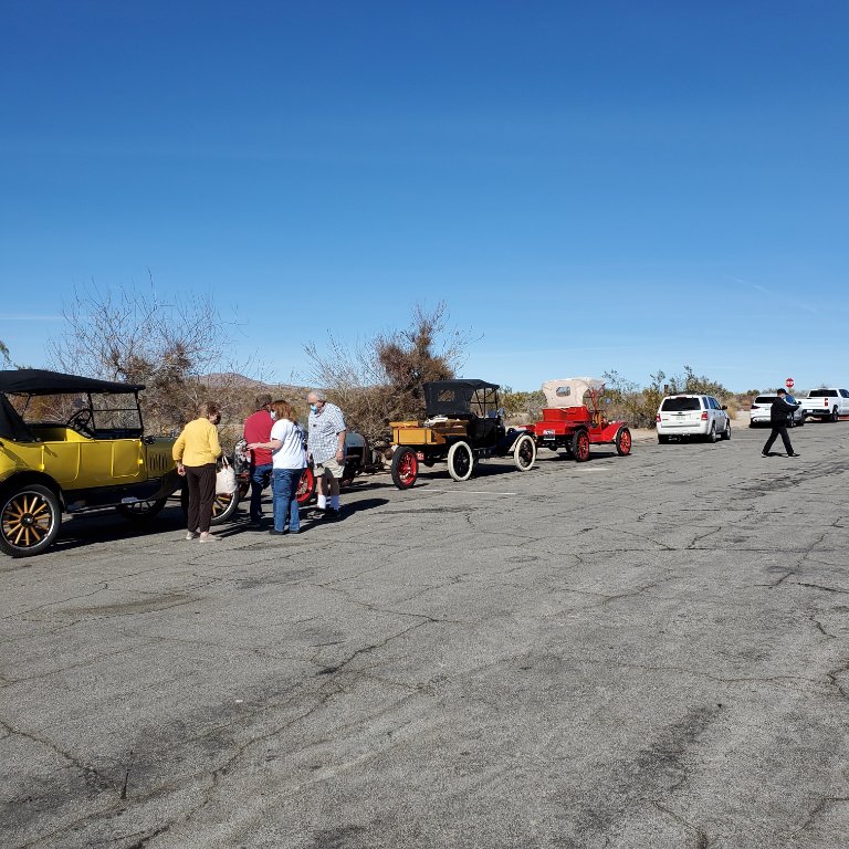I brought the '22 Ford touring my dad bought in 1939 for 10 bucks. I have never driven it that far in one day and it was a blast! The Mojave Desert is an amazing place and the weather couldn't have been nicer. I had to double back and help my nephew fix a flat on his '15 T , so I never saw the tour again till we got back to Desert Hot Springs. Here are a few photos from the journey.