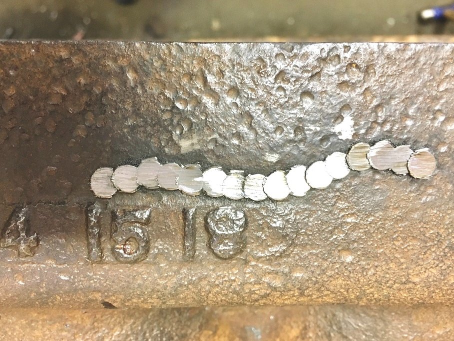 I decided to try the Lock-n-Stitch method to repair a freeze crack in a 1918 block. This crack was an easy fix as the parent material was thick enough to catch plenty of threads on the pins. Here are the before and after pics. I still have to grind the heads of the pins down to the surface of the block and use a de-scaler to reintroduce the original casting texture look.