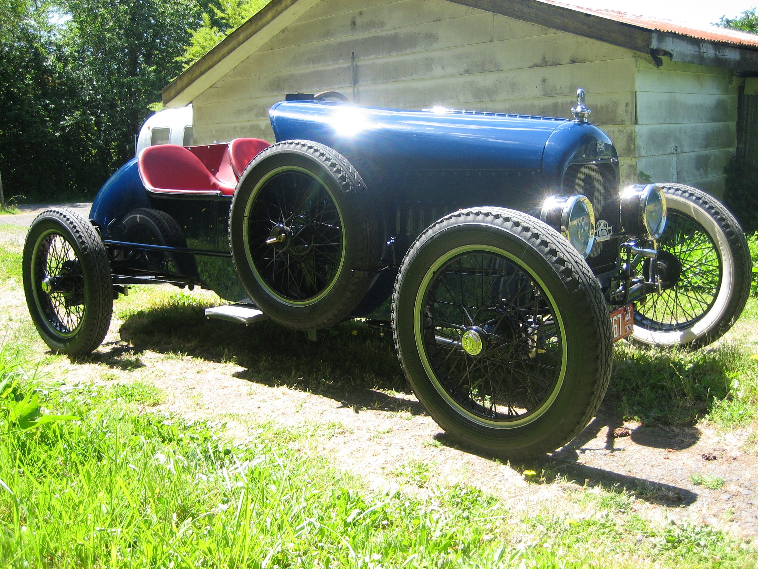 This is my speedster with a Rajo Over head valve that was manufactured in about 1923 with out the heat riser. The engine is coupled to a C 4 automatic. About 10 years ago I had the opportunity to dino the car and it came up to about 100 HP at the fly wheel. The engine is full pressure with insert rods and mains. Tom