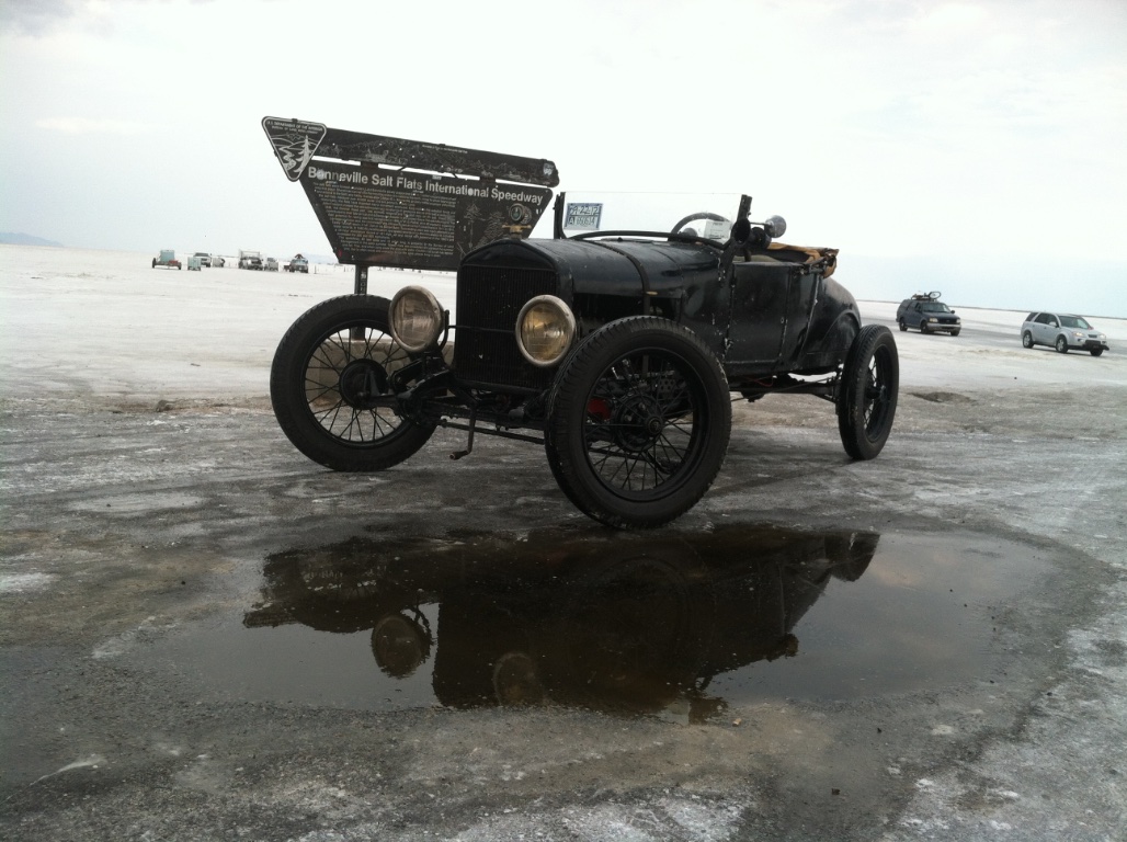 I love this car! Clayton and I built her several years ago for my dad as a Christmas present, but he assed away before we finished it. We finished it any way and decided to drive it to Bonneville Salt Flats for Speed Week in 2012. The last picture was taken on I-84 eastbound with Clayton chasing me in his 1926 roadster moment before I blew the crank doing 65 mph. Clayton made it to Bonneville I didn’t. Due to teething problem with the new motor it sits waiting it turn to be re activated hopefully this spring.