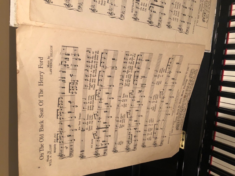 I’ve original sheet music for “On the Old Back Seat of the Henry Ford”. Still gets its original use from time to time; here it is on my piano.