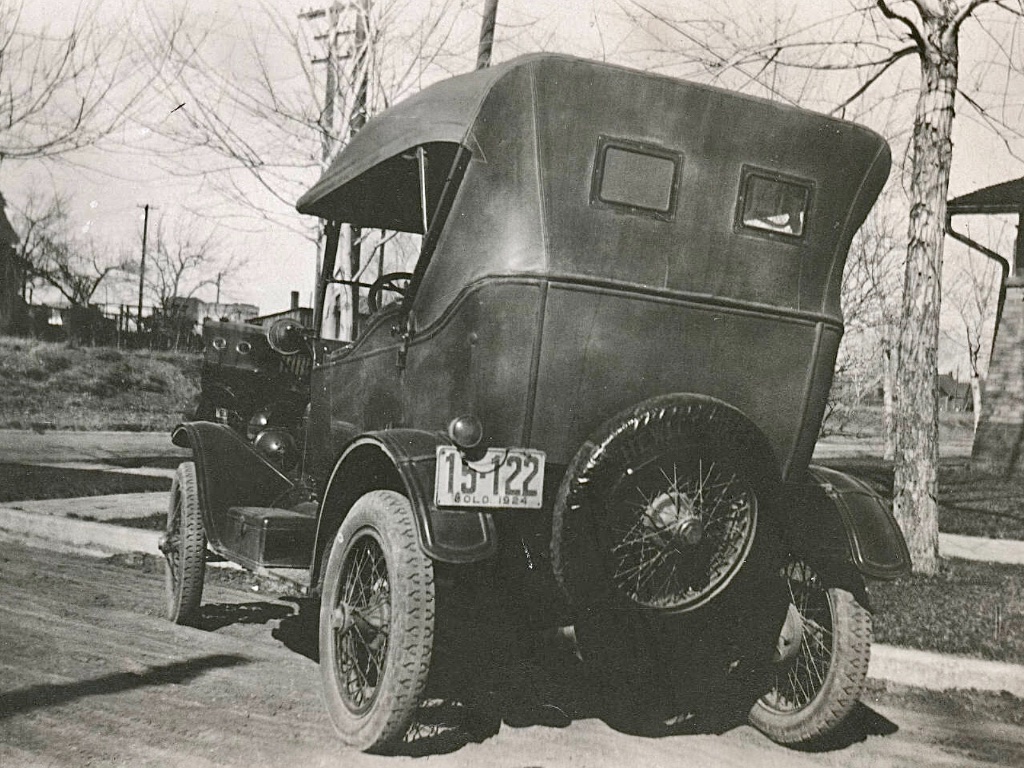 The first one, license number 15-122, I believe a Colorado plate (I googled it!), appears to be a USA built car. Likely a 1923 or '24, with several accessories. Rear curtain lights (windows), tool box and spotlight in addition to the wheels.