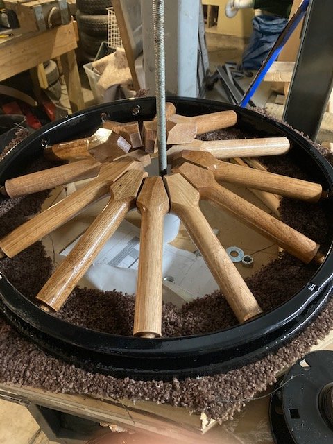 They are done and so far look gorgeous. The big problem now is my powder coated hub top plate is stuck and won't go down to its proper depth. I was warned about this phenomenon with powder coat. I've tried sanding off some powder coat but so far no go. Other than that I am ready to press the wheel.