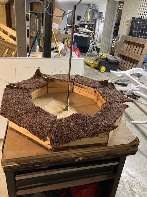 Solution? Take a red Solo cup and punch a hole in the bottom just big enough for the all-thread and put the cup bottoms up on the rod before placing any spokes. Keeps the TeePee from wobbling and when/while the teepee is compressing square, the plastic cup just collapses.
