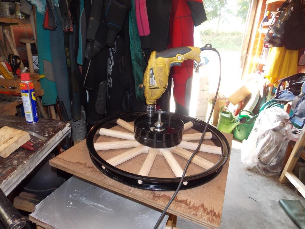 Andre thank you for the ideas and pictures. I will use wax on the next one. I did remove the clear coat before pressing the spokes. I will try to use the 2 drum method making building a drilling jig not necessary.