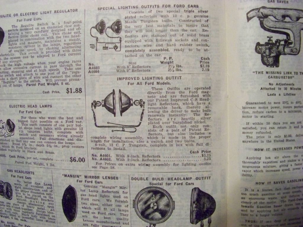 The advertisement for the "Improved Lighting Outfit" shows the kit which is my '14 touring and was likely installed by the original owner of the car, along with a few other period accessories to make touring more pleasurable.