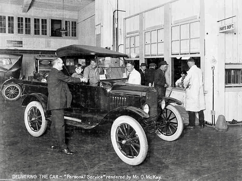 Steve _ When I first saw that photo of the Wm O.McKay Ford dealership yesterday, I remembered you saying that your "Gramps" '24 TT truck was purchased new there. In expanding the size of the photo, it's very hard to tell, but by what i believe is the reflection of headlights, L/front hubcap and possibly a front bumper, it would appear that the new Ford in the showroom is a '30/'31 Model A, or a very early '30's car. All that to say that your grandfather probably purchased the TT truck approx. six or eight years before that photo of the dealership was taken. Unless you have a collection of documentation and/or photos that go with "Gramps" old TT truck, a copy of the Wm O McKay dealership photo would be nice to add to your "collection of whatever else you might have that goes with the old truck!