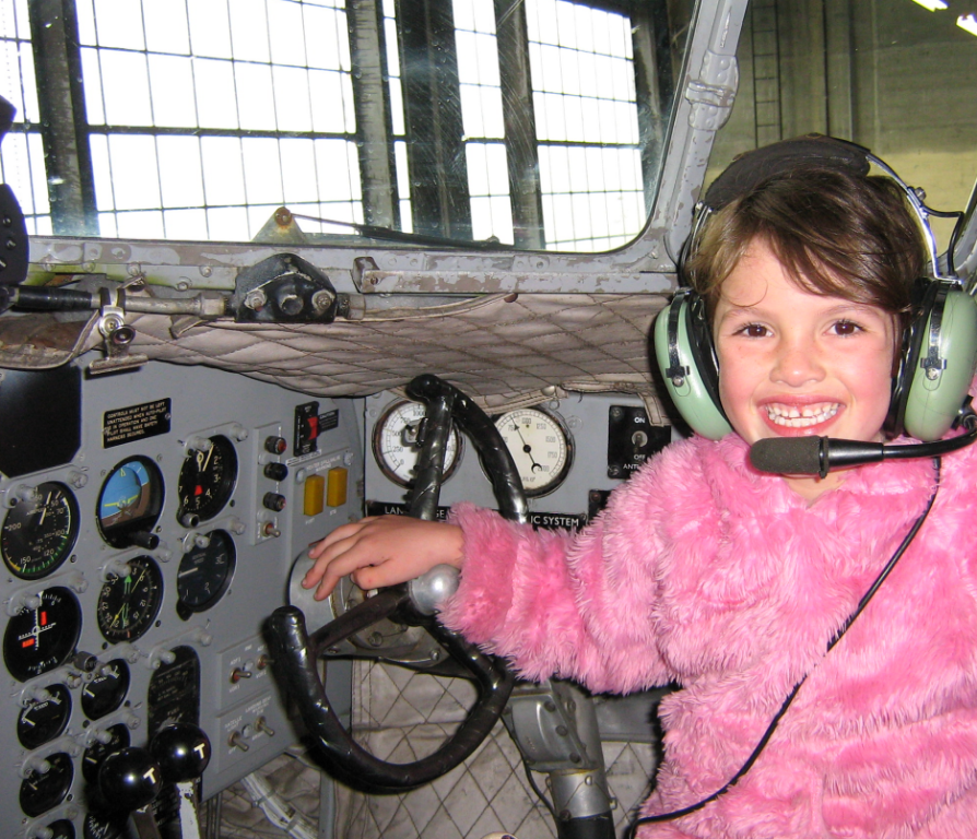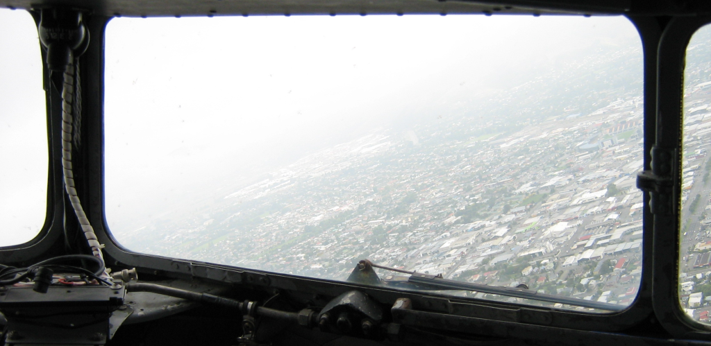Out of interest I include a couple of photos of 'my' old aeroplane, one of daughter in the RH seat, the other a 'working' view - and yes you can open the windows