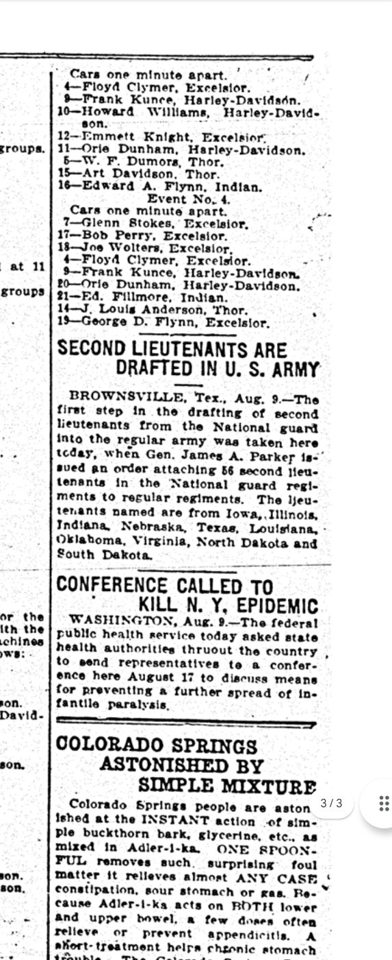 Anecdotal family history places my 14 at Pikes Peak for the inaugural race in Aug 16, driving cross country from Decator MI to CO that year.. Haven't been able to find any reference to him being entered, most likely being one of the many thousands there who came from all points for the race.