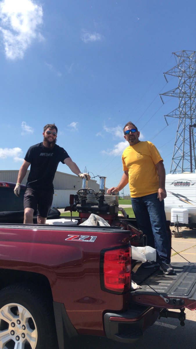 Here she is. This is Rob and I after we dragged the powerplant to my truck bed after a combined 3,000 miles of driving. I'm honored to own this piece of automotive history and happy to give it a new home.