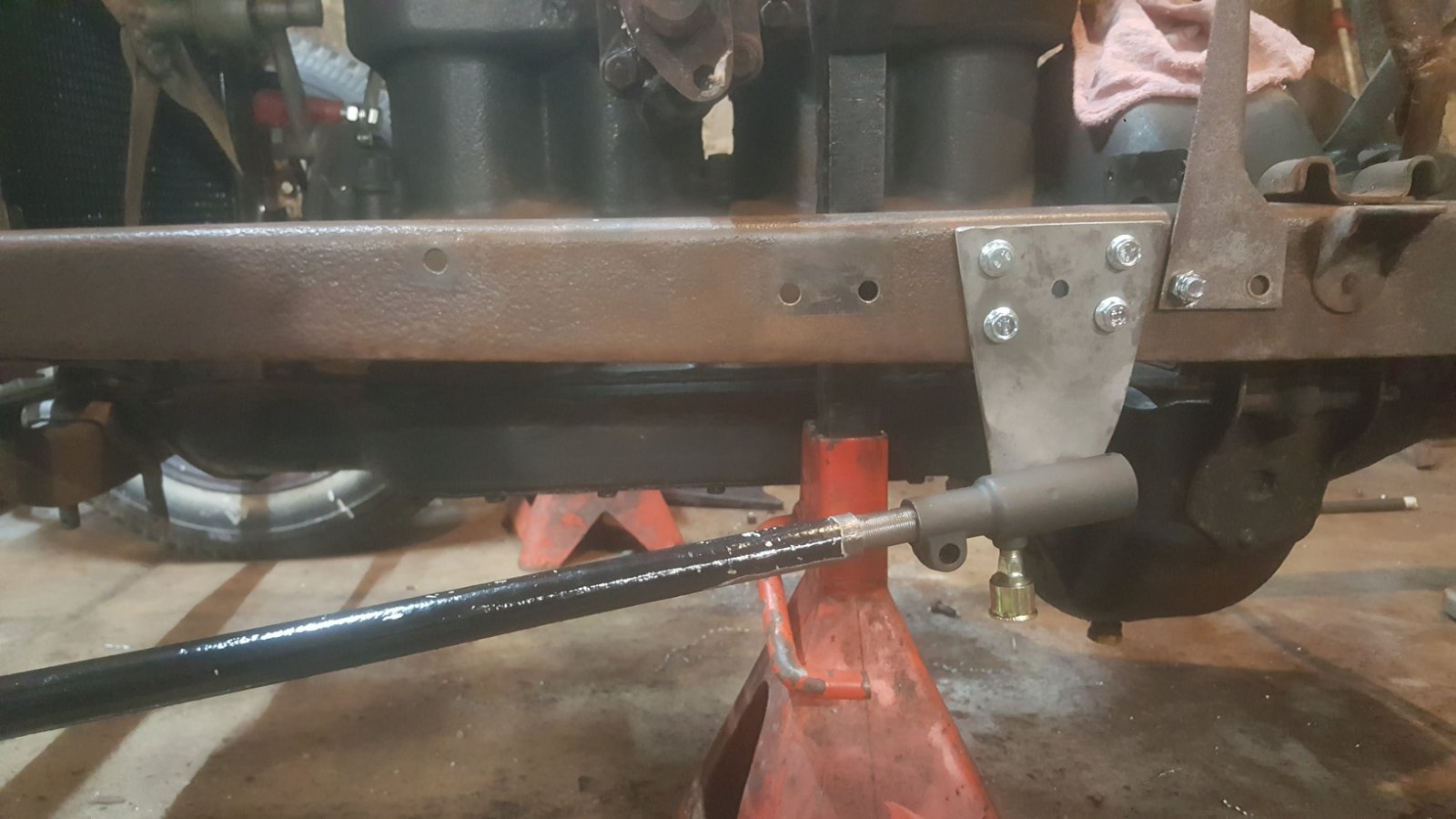 I cut the wishbone then inserted a good chunk of model a tie rod inside, then plug welded, welded the seam of the wishbone, and the end. I am going to install spring perches and welding another pipe to make them into a hairpin design for more strength. I made a 3/16 inch plate with a model a steering ball swedged and welded. I'll be modifying the mounts for a bit more strength in the future.