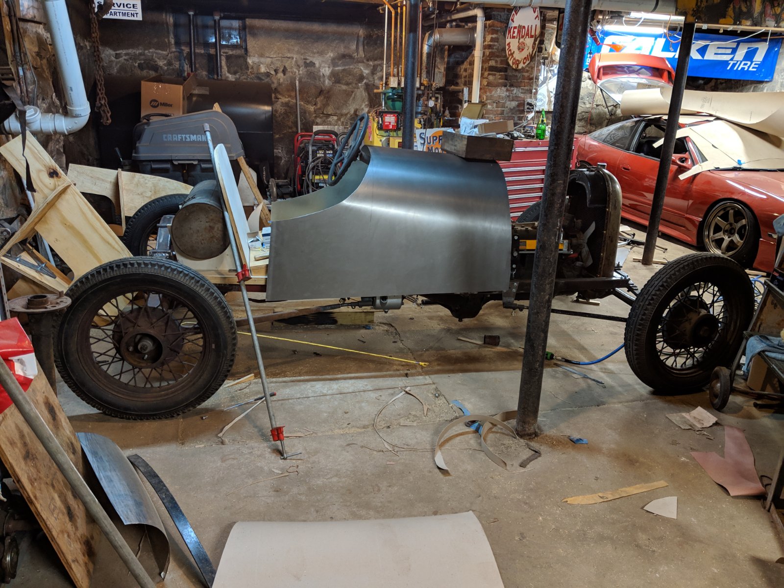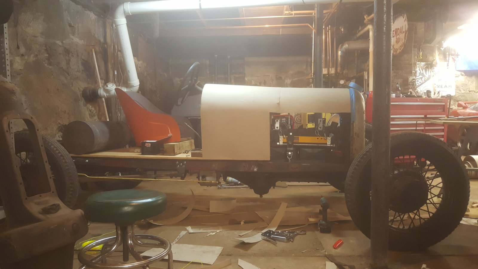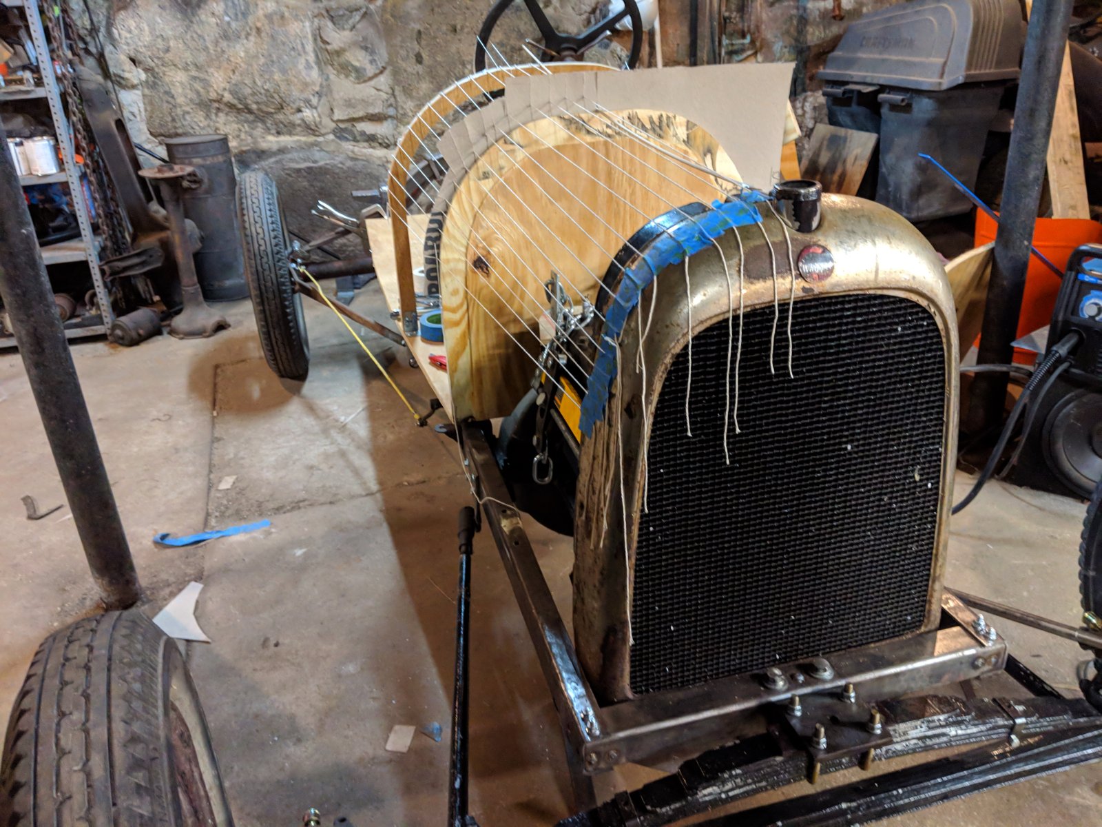 I created a dash, then mounted up a rough firewall. I ran strings from the dash to the radiator. I stapled a piece of cardboard to the rough fire wall then slit the cardboard until the string ran straight through while taught. Once I did this about 50 times I got a good half profile of the firewall shape I wanted after trimming the cardboard at each slit to flow well from radiator to dash.