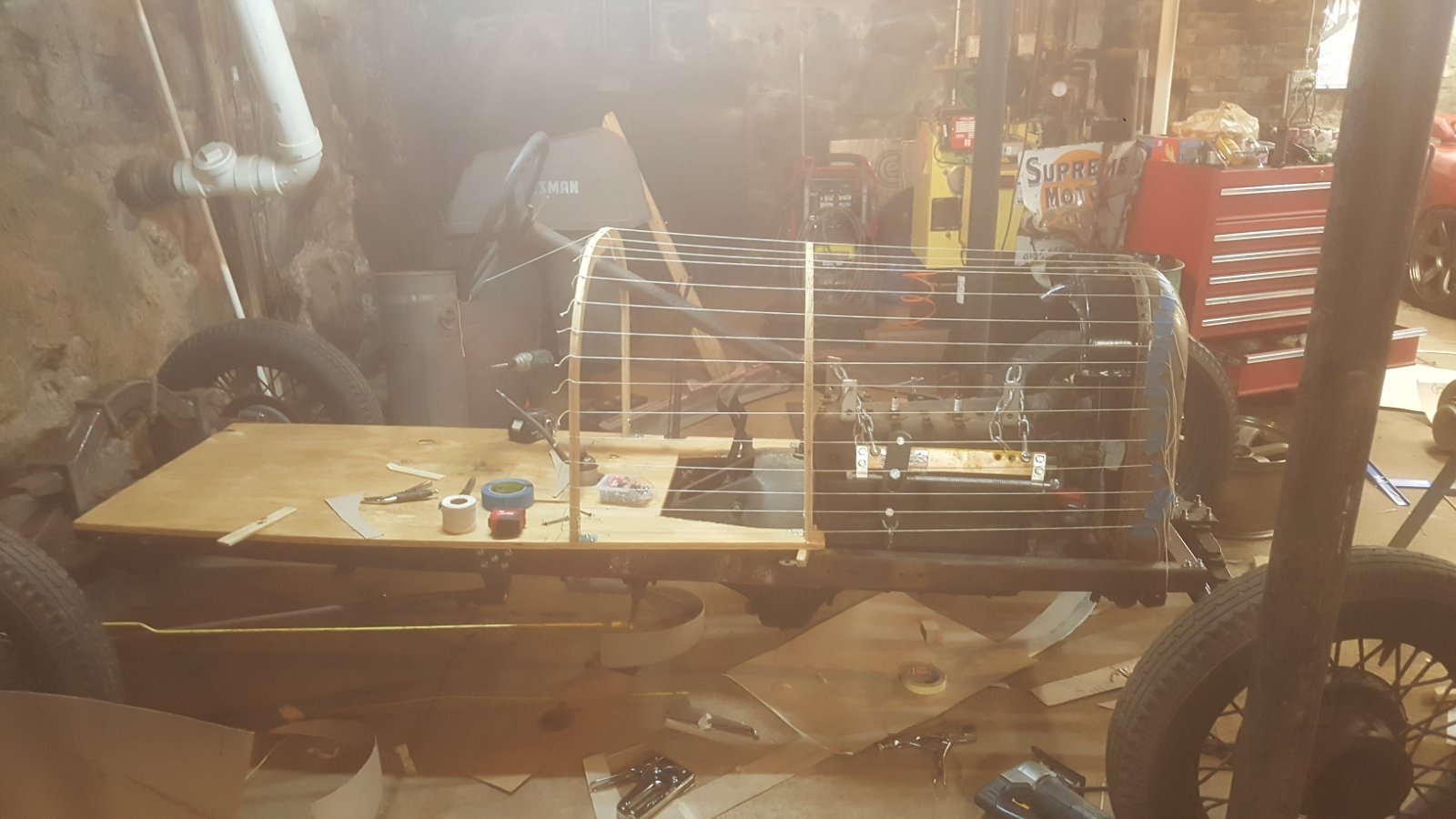 This is a clearer view on how I got my firewall shape. I ended up doing this multiple times because I didn't like the body shape. I spent a month playing with cardboard I think.