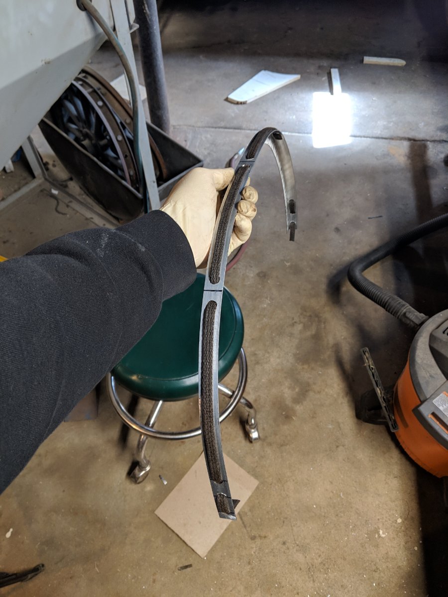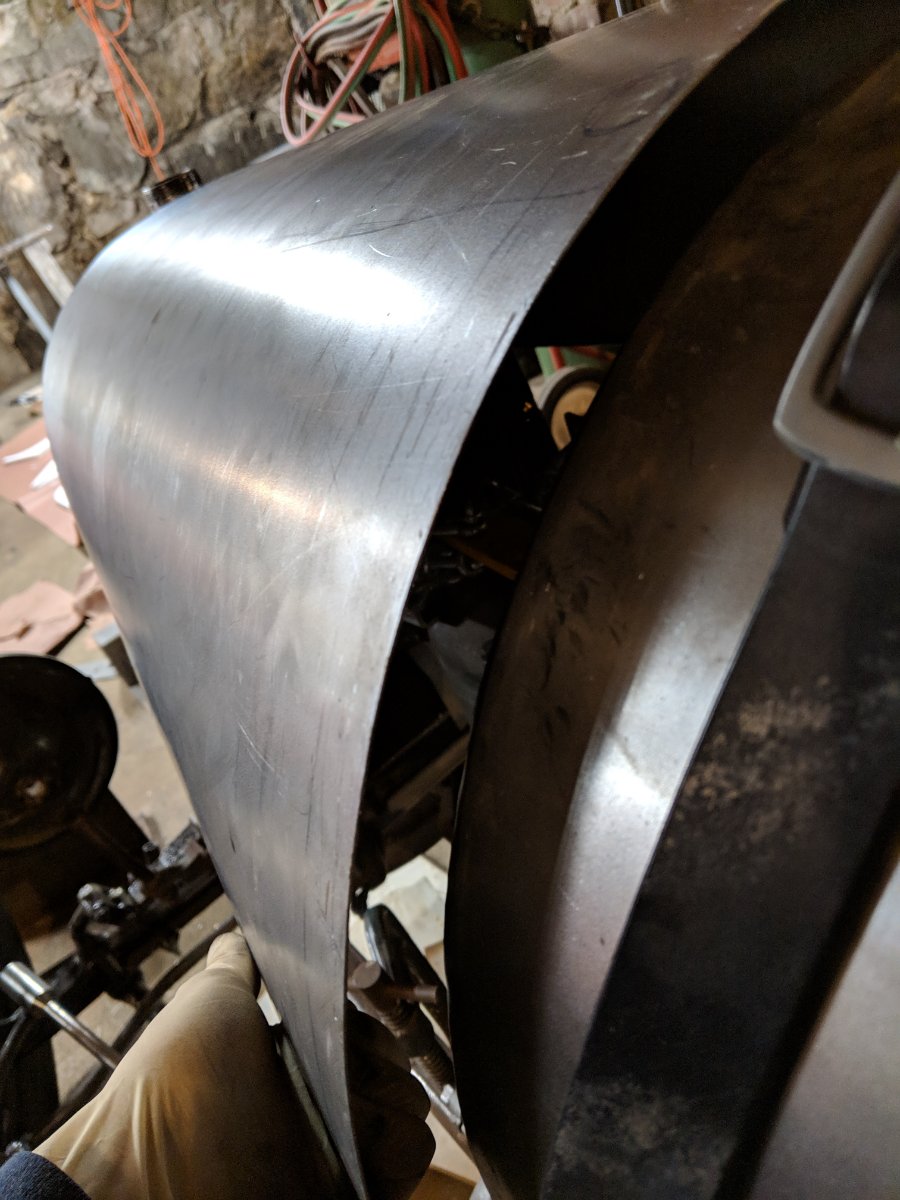 After this, I began working on wire edging the circumference of the cockpit. I used 5/16" steel rod. I welded a piece of rod to the end of vise grips, and a plate to the other jaw. I gradually clamped and rolled the edge until I formed a 180* pocket. Then I formed the rod to sit in the pocket, clamped it, and hammer/dollied the sheet metal over the rod.