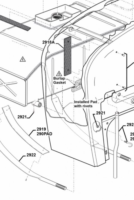 The overflow drain pipe is held with 2921 long single slot set screw and retained on the lower cowl with a hook shaped fastener with nut inside cowl.