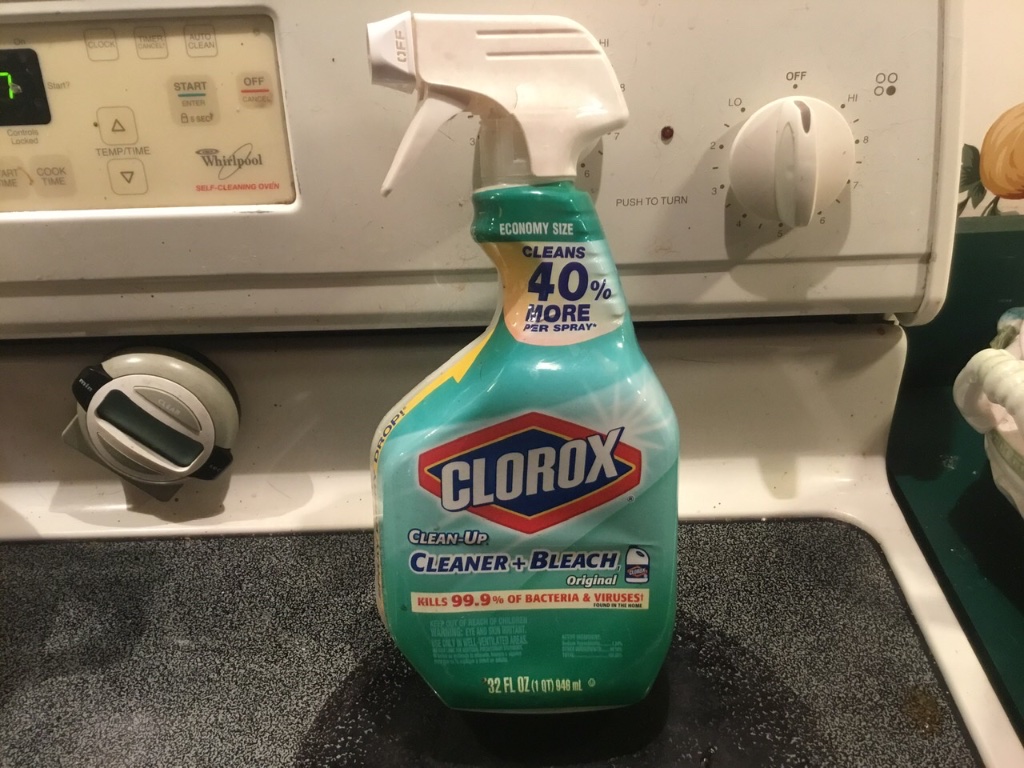 Spraying on a diluted mixture of Clorox and water and letting sit will kill the mold and mildew. Clorox also has a bleach based spray on cleaner that will work well (see photo). After the mold and mildew lightens up from dark green to yellow, it is dead. It might even disappear altogether. Once it is dead, wipe clean with a damp (wet, but not dripping) clean cotton cloth. After spraying, immediately wipe up any overspray that may have settled on the upholstery or interior. Lowe’s has plastic bags of great quality, white cotton rags in the paint department, like old soft T shirts. Jim Patrick