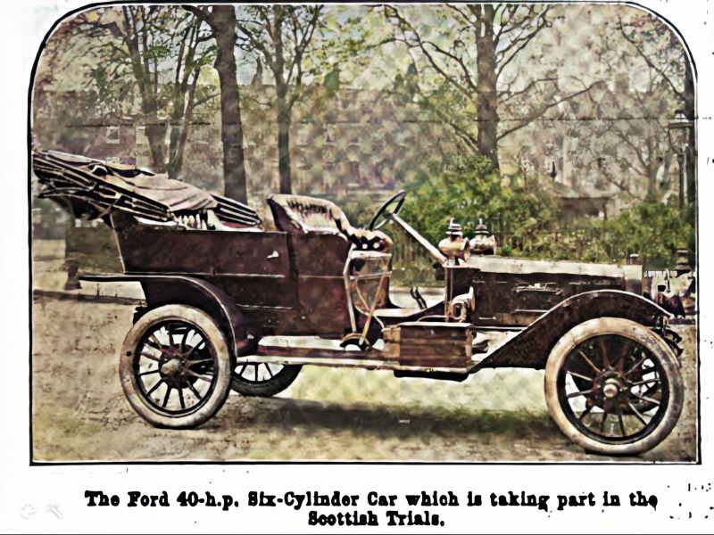 Model K on 1907 Scottish and Irish Trials. Only Ford (K and N) and REO participated from the U.S..