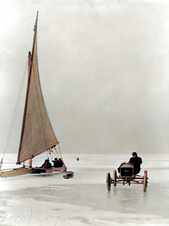 During the late winter of 1909-1910, Ford and Kulick return to the race scene, taking on an ice boat near Detroit. Over a two mile course including one turn around, the Ford averaged 75 mph. This was the first time a Ford Special racer was seen in competition. Over the next two and a half years Ford raced special racer and stock chassis in events throughout the east, south and Midwest.