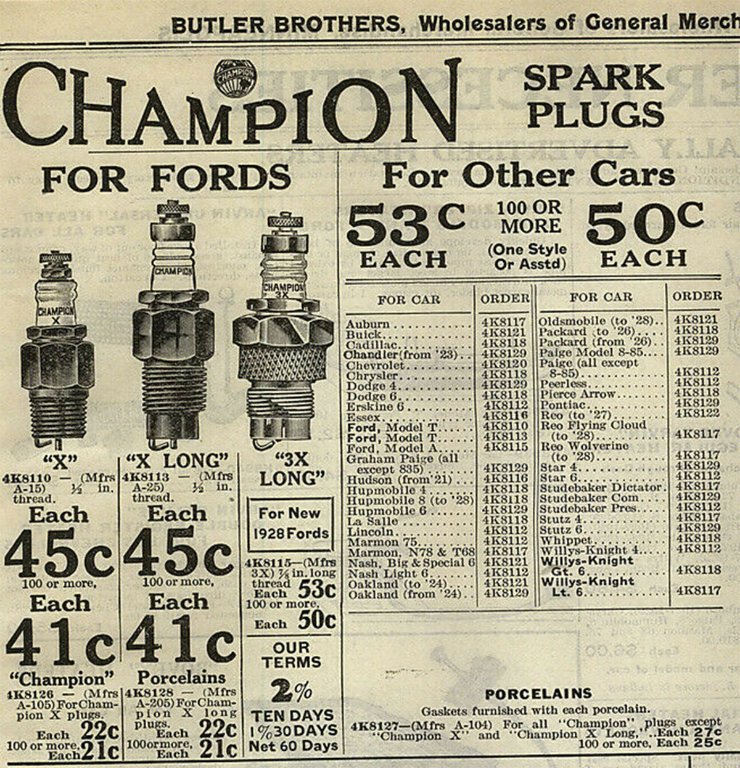 It's always been interesting to me to see so many variations in the Champion and AC stories and in what is assumed about the spark plugs labeled as "Champion," particularly the X as used in our Model Ts.
