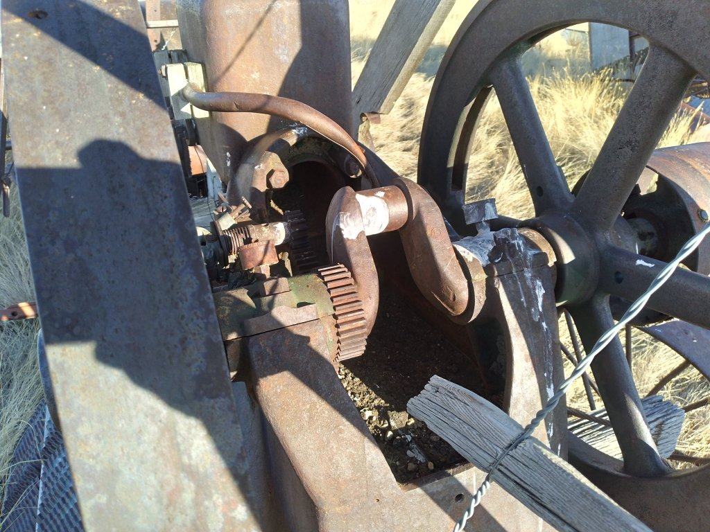 Built on a huge wagon frame of some kind, obviously built by the local blacksmith or farmer from parts salvaged from a steam tractor, it is ingenious in construction and probably drilled a lot of much needed water wells during the northern Montana homestead boom.