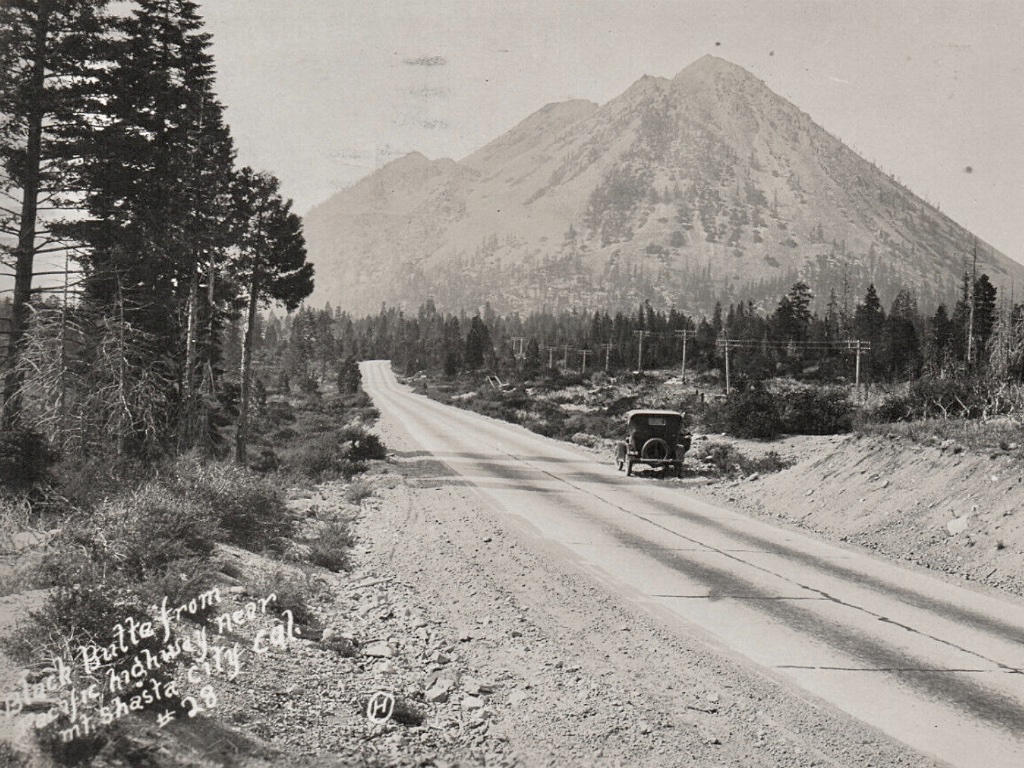 The one a few up of "Black Butte outside Mt. Shasta City" is where I-5 runs along that same right of way... BTW, the "Black Butte" is actually a volcanic cinder mound, and yes, it's both black and it's still there... So the original 2-ish lane "highway" is now a 4-6 lane freeway.