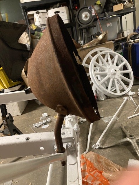 For the Hay wagon to Speedster project, I am now the proud owner from Chickasha acquisitions of 4 headlights of which only 1 is currently usable. Two are in good enough condition but the 'feet' on the mount rod where they fit into the fender hanger is side to side when my fender hangers slot is front to back. The other two are in rougher shape, one is good enough, but the 'feet' on the mount rod are front to back as they should be for this fender hanger. However, one of the two is in poor condition with the rim a bit torn the adjustment screw missing and it 'stargazes' a bit. Oh my. I do not see any obvious damage so I am not sure why it stargazes or what to do about it. The other one does not stargaze. I was able to retrieve reflectors and lenses from the two in rough condition but I am unsure how to proceed. I might be able to weld on the missing/torn piece?