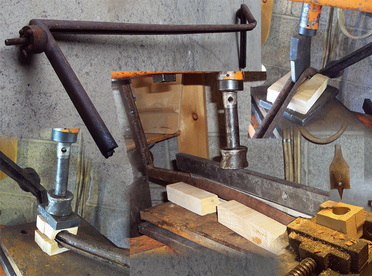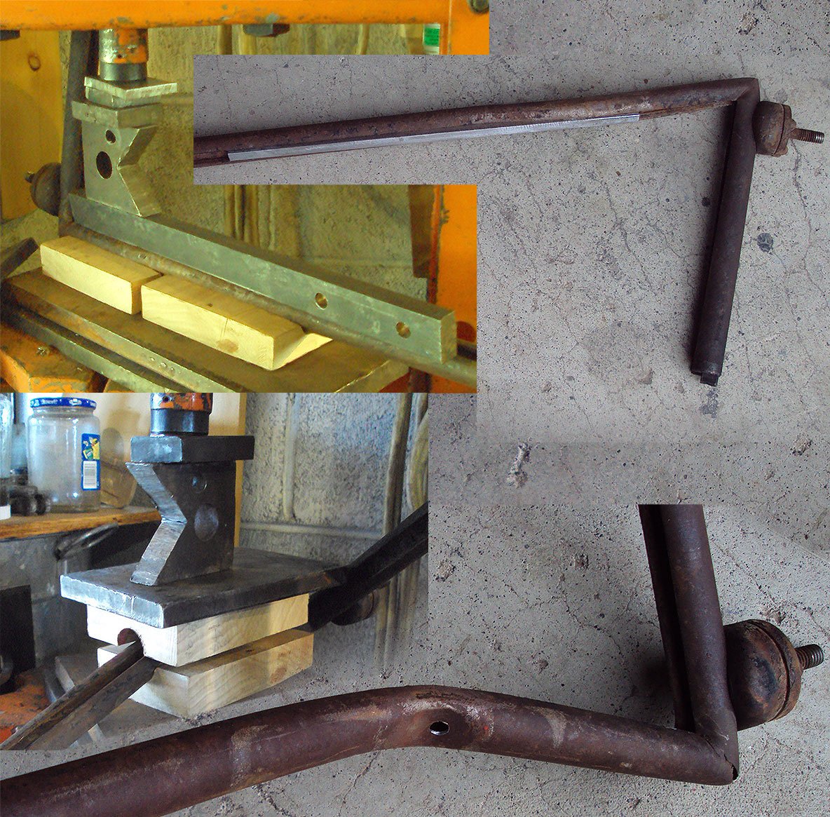 The pictures show how I pressed the steel into a U-shape using the jig and finish bending with a vice. The final push was back in the press.