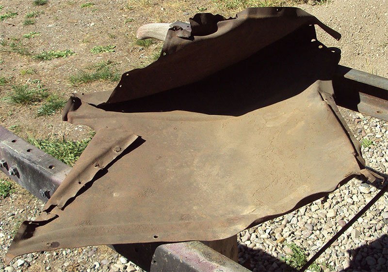This is a jig I made to straighten my Coupe hood. The curves often seem to get out of shape. It got this hood as close as it needs to be. (There is even some original paint on it.)