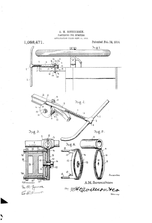 The parts themselves look very well-made, but the attachment method does not. Is it possible that it is a non-T item, or that some additional mounting hardware is missing? ? Perhaps it was intended to act somewhat like a curb feeler, rather than a crash bumper, to facilitate parking in tight spots.
