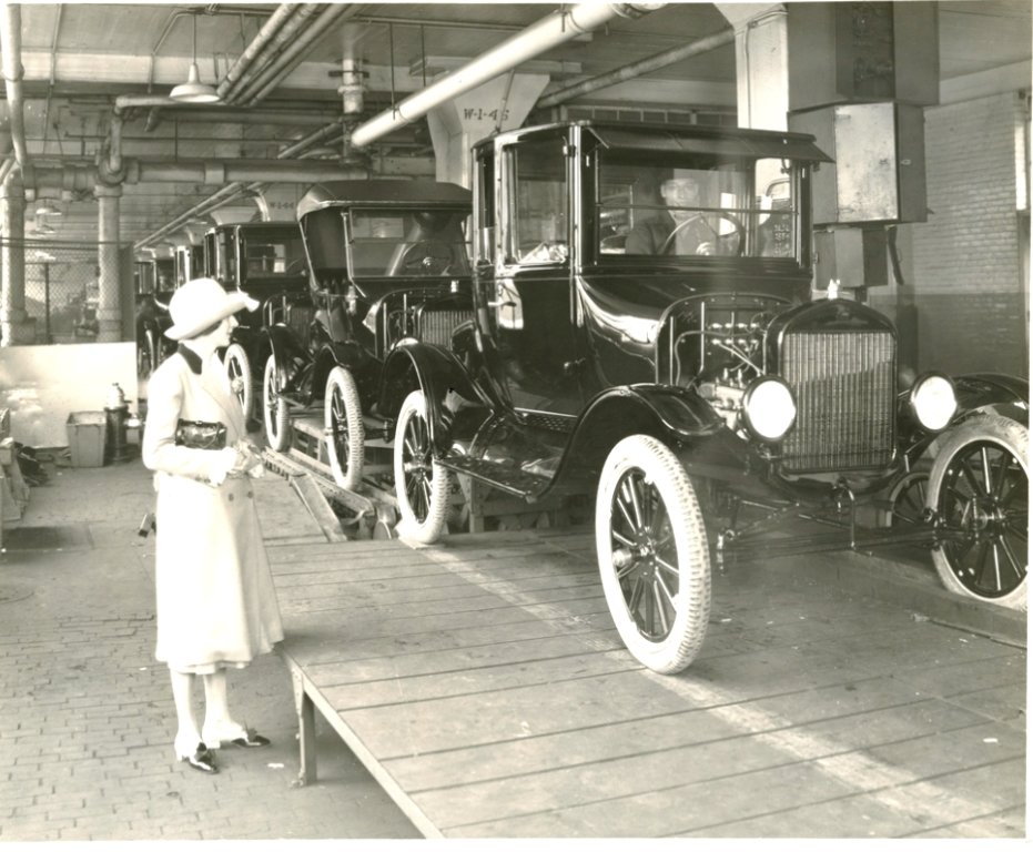 Clearly Ford desired to install bulk price contracted tires from a number of companies, and those supplied perhaps were off-white a while longer after 1921, as that factory assembly line shows perhaps a '23 Ford.