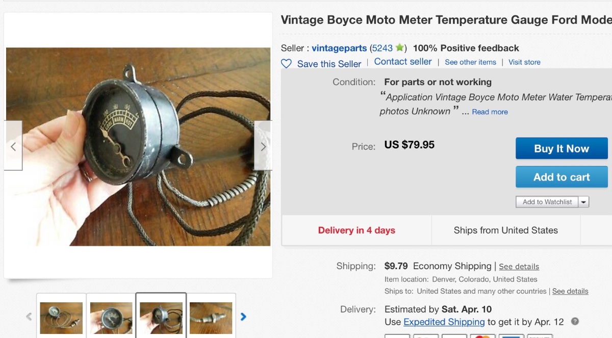Danny, mid 1920s motometer came out with steering column mounted water gauges and also dash gauges. This may be an idea for a period item. This dash type is on eBay right , looks complete. It’s nice if the seller will drop the bulb in a cup of hot water to see if it works. Otherwise a crapshoot.