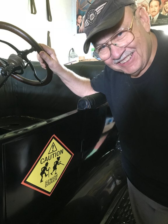 When I first got my Model T my daughter gave me a gag gift on my birthday of a folding cane and magnetic sign that says