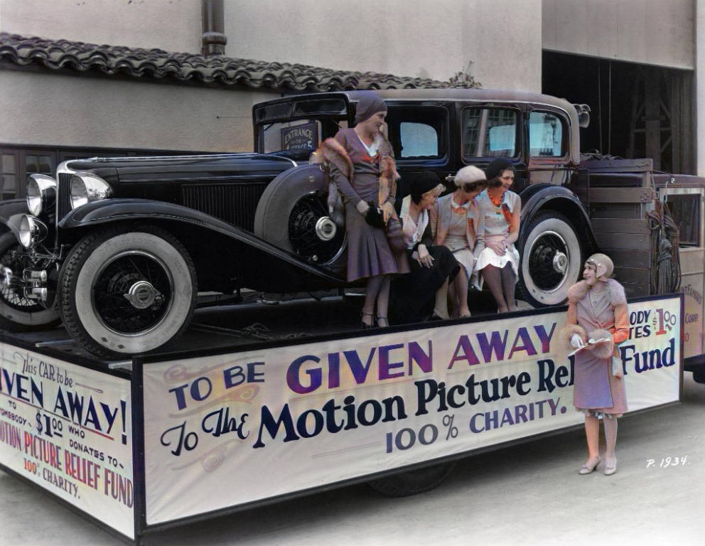 I colorized this picture as well. Isn't that Mary Pickford, 'America's Sweetheart' beside the float?