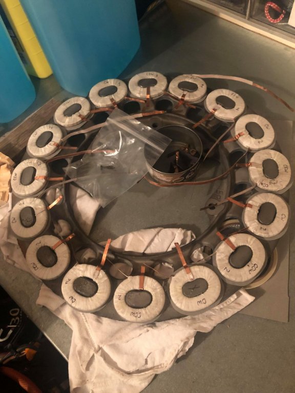 I did finish all sixteen coils tonight. I don't want to test fit just yet for fear of damaging any of the insulation. My thought is to grind the ring first, and determine whether or not it is usable before mounting the coils.