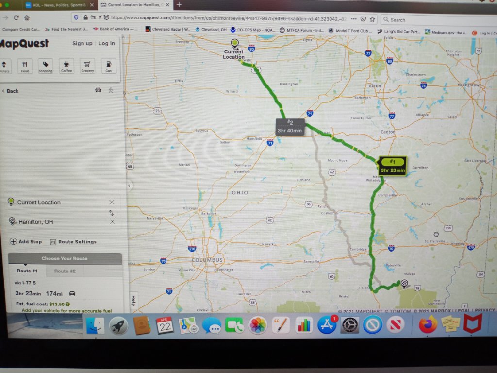 Which Hamilton Ohio? There is TWO! That's how I was lucky to acquire my former '20 Runabout. A lady from Meeechigan traveled straight down I-75 to the SW Hamilton, only to discover the car was in the Hamilton clear across the state in the SE corner not far from Wheeling W.V.!! She said screw it and went home. I got the car!