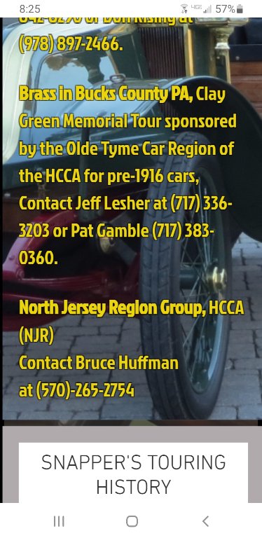 Dan, this year the 'BBC' tour is being held in the BBC founder's honor. The Clay Green memorial tour. See photo. The BBC actually hasn't been run out of Bucks County for a number of years, being run out of Strasburg. PA the last few years. This year's Clay Green memorial tour is being run out of Hershey, PA from the hotel next to the AACA museum and will begin with cars rolling in to the hotel and being displayed at the museum site the afternoon/ evening of May 21, the week after Luray. The Clay Green memorial tour is filled i am told, but you can always contact the organizers for the waiting list.Dan Hatch wrote: ↑Sun Apr 11, 2021 6:22 amLuray Va is coming up in May. Not sure about this year, but most years the Brass in Bucks Co is held on Sunday after Luray. That is 2 pre war swap meets in the same weekend. Brass in Bucks is in Pa about 120 miles from Luray. If fact a lot of people going to Bucks stop at Luray on they way. Dan