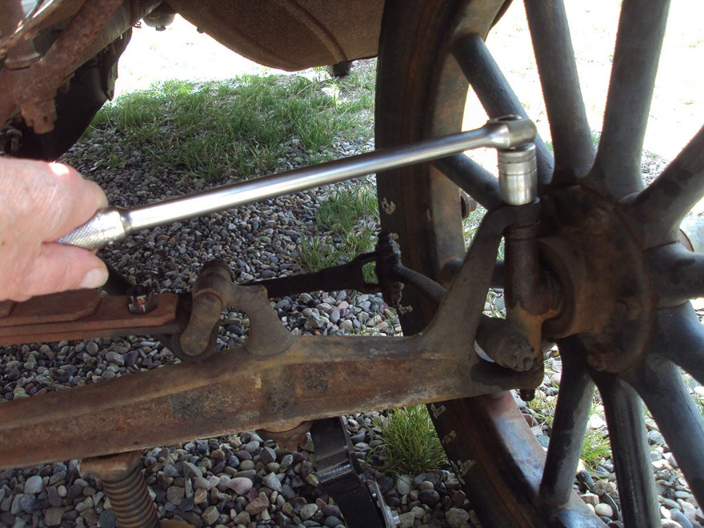 With the freed up spindles and lots of oil I now have a slight shimmy at low speed. No good deed goes unpunished. It is easily controlled by keeping pressure to one side or the other. I have heard all the causes and have corrected many shimmies before but can live with this one for now. Perhaps the wear and the extraction enlarge the bushings a bit.