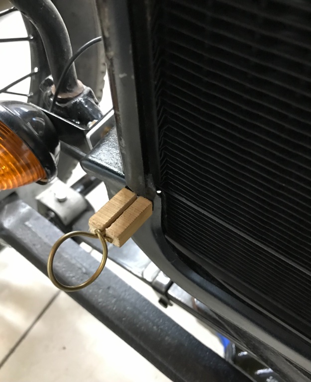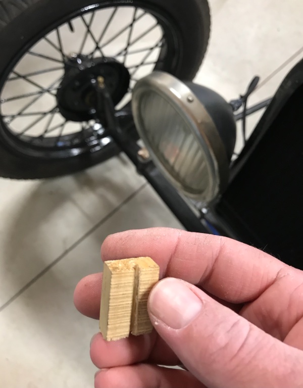 When it’s colder out my speedster likes to have a little more choke once it starts. I made this little wood spacer to hold the choke on while I run around and pull the timing lever down and switch it over to mag.