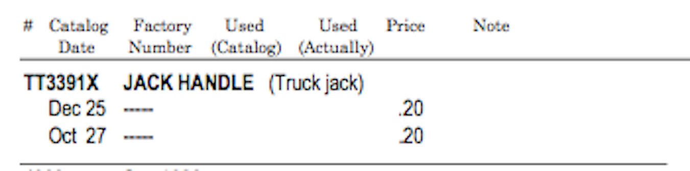 Here is a current listing on ebay for a tire iron with a TT part number.
