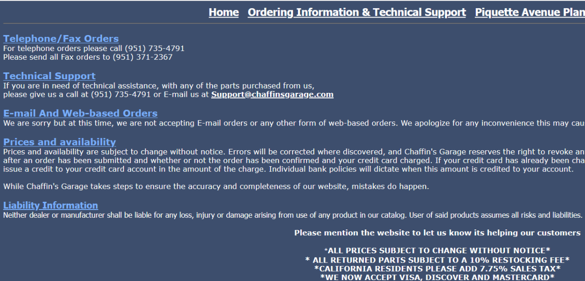 On the other hand Chaffin's has their catalog available as a download - it is a piece of art https://www.chaffinsgarage.com/catalog.pdf