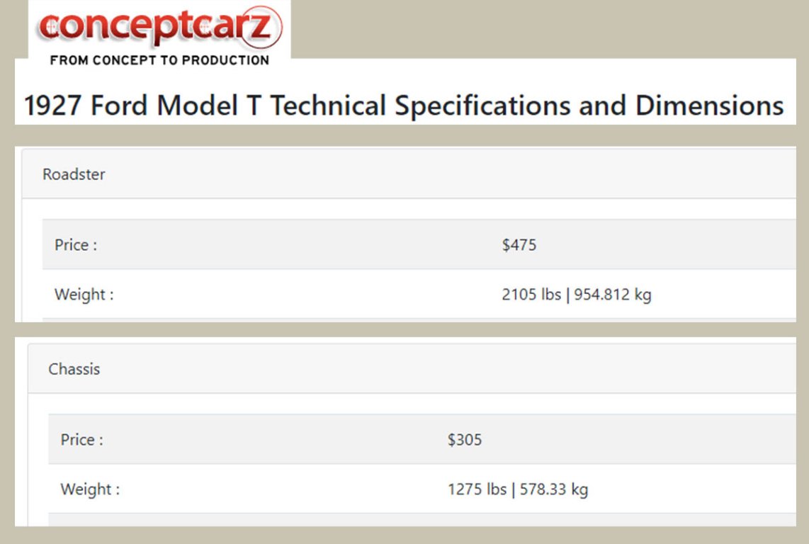 https://www.conceptcarz.com/s1963/Ford-Model-T.aspx If my math is right everything but the chassis weighs 830 lbs. Minus fenders, running boards, splash aprons etc and top would give you the weight.