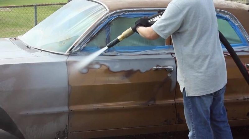 If its the original paint that has been bonded to the metal for the last 95 years why remove it all? W ill you get a better bond than that? The word on the street to remove paint off a car is Soda Blasting as shown in the picture above. Sure he knows that if the blasting method heats up the metal it will distort it. If you insist, start with the part least likely to distort.BLB27 wrote: ↑Fri May 28, 2021 9:10 pmI have talked to a body shop about blast cleaning my 1927 coupe. He is well aware of the potential problems associated with blasting cleaning. I am going take the trunk lid, one of the splash panels, and maybe a fender to him. He will use both walnut chip and sharp glass media, with reduced pressure, as trials. He may also try a combination of both.