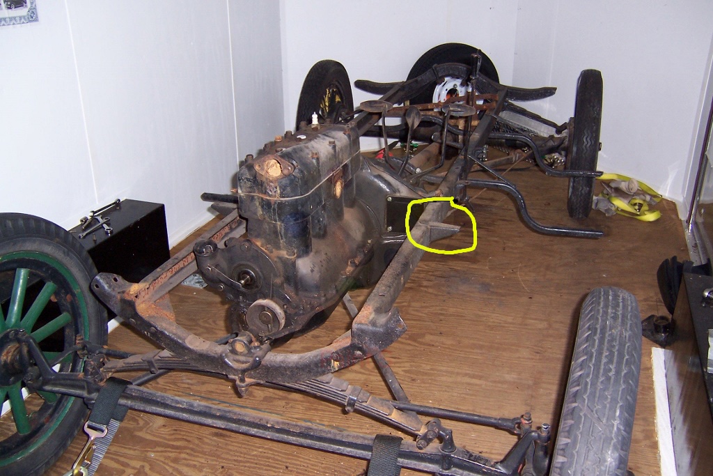Another photo to show the frame mounts on the '26-'27 frame, as noted the 'wider' mount up front is for the hood clasp as the Improved Car has a bigger hood, and those mounts are needed for the hood shelf so that the wider hood will mate with the cowl. You'll need those wide mounts if running a stock hood.