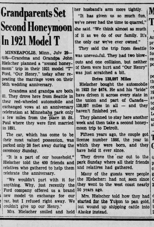 Wow! Someone who drove a Model T as their primary car, everyday, for 30 years and across all 48 states, must have known all the tricks to driving and maintaining it in top running condition. I’ll bet he did all his own work and wouldn’t allow anyone else to work on “Our Henry”. Would’ve loved to have known them. I wonder how long they lived and what ever became of them. Jim Patrick
