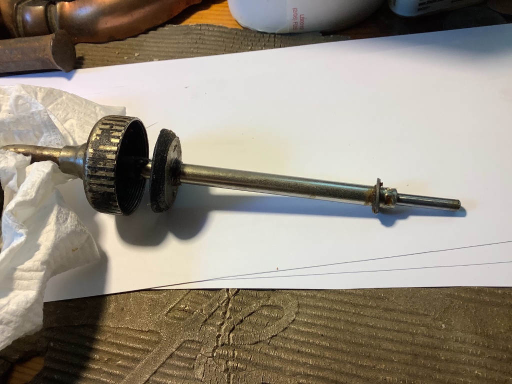 Mine has a solid pin that acts like the piston. The leather sandwiched washer just floats on the shaft, probably to aid in getting the grease neatly inside when filled. Perhaps the suction action keeps it on top of the grease when pumped. The stroke is not much but they work well. I’ll check a couple others.