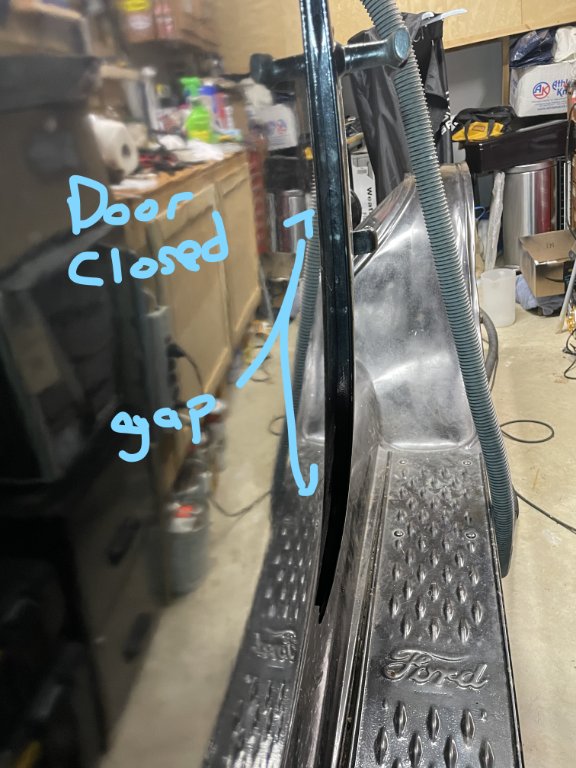 Perry, thank you. On the drivers side, when the door is closed I can push on the top and bottom and the gap closes, but as soon as I release the pressure it goes back. Where the latch is in the middle of the door there is no gap. The drivers side gaps on the top and bottom are not bad. Maybe 1/2 inch. The passenger side door is the one with the larger gap from top to bottom. I'll mess with the latch on that side, assuming I would need to move in inward.