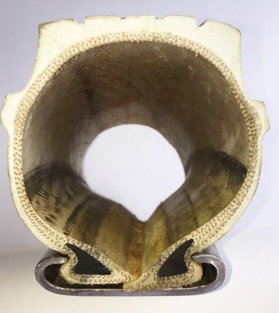 This is the cross section of a vintage tire...note that there is no way for a tube to contact the clincher rim, and thus has no need of a flap...very likely the reason that they were not considered necessary "back in the day": photo courtesy of MTFCA and Dan Treace