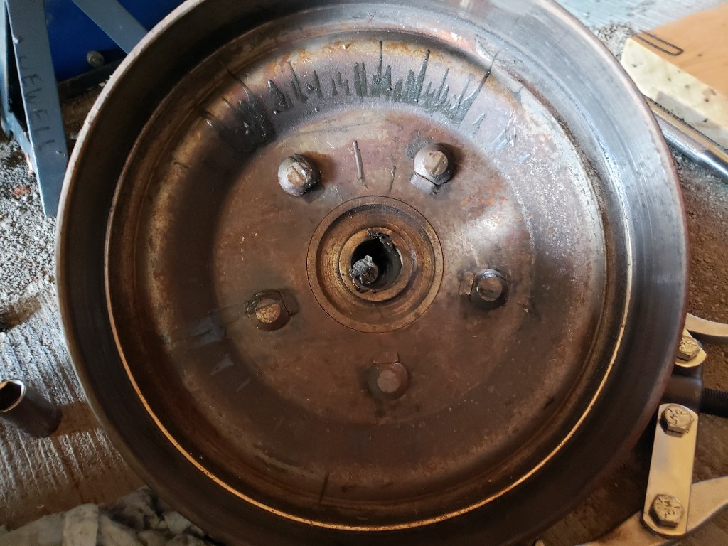 Wire wheel hub is fairly scored. Don't think I should reuse it.