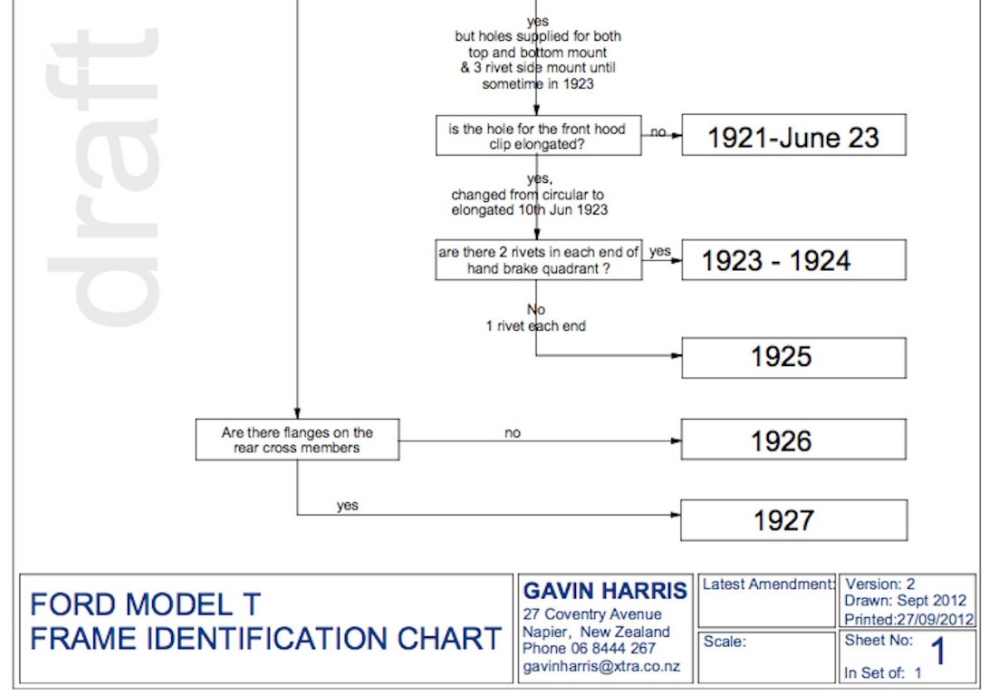 Being a speedster it's home made. That usually means a mixture of Ford and non-Ford parts from several different years. For registration purposes I suppose you could go with a majority of the parts, or the frame, or the engine, or whatever suits your fancy. If you want to use the frame, this will help you date it.